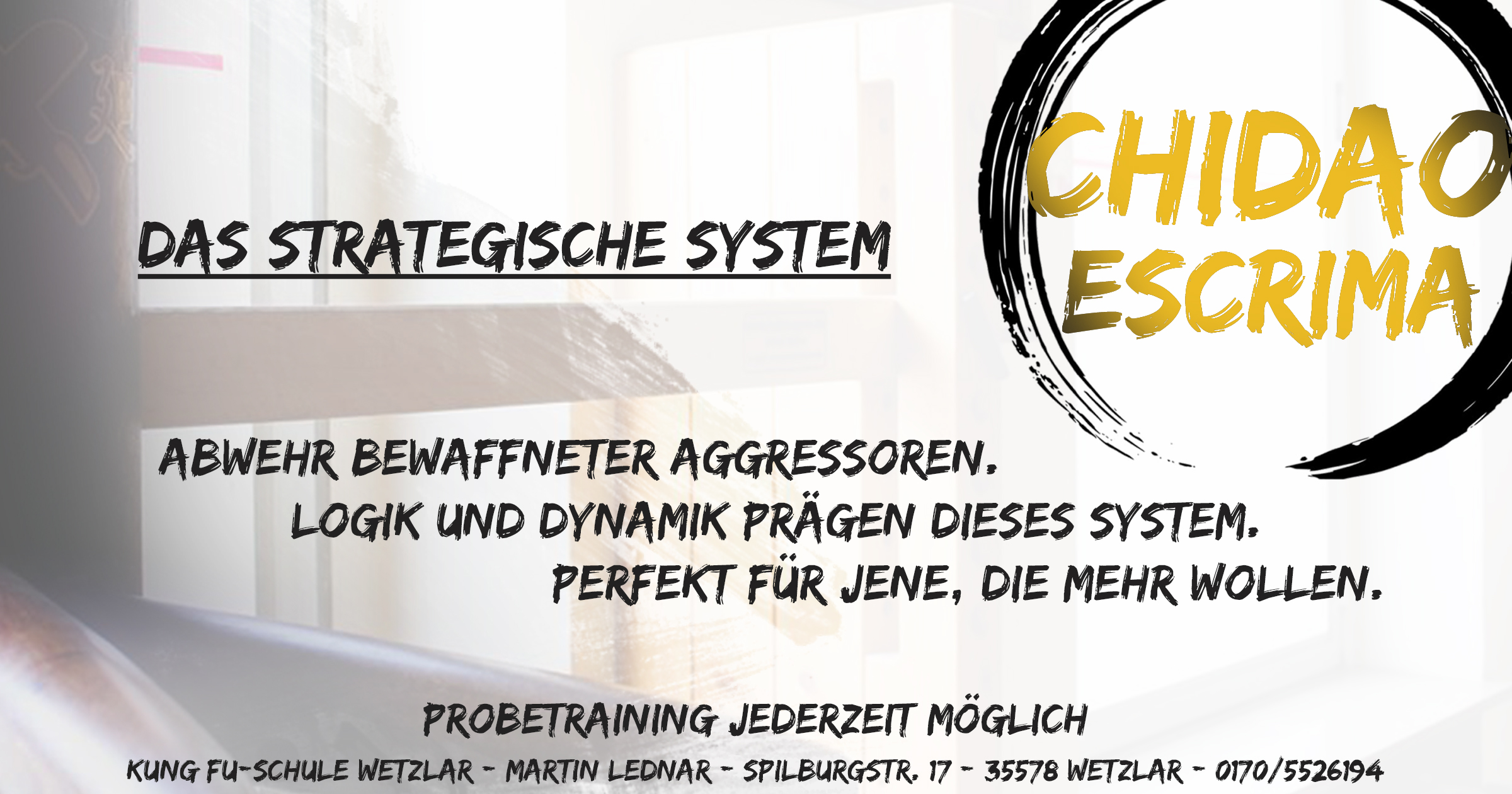 Definitiv ein Weg des Mutes! Was soll ich unternehmen gegen einen Angreifer mit Waffe? Wie bewege ich mich effizient und strategisch um gegen mehrere Angreifer bestehen zu können? Diese und weitere Fragen zu Deiner Sicherheit beantwortet Dir Dein Meister Paul gemeinsam mit Hilfe des Chidao-Escrima, um Dir mehr Sicherheit in Extremsituationen bieten zu können. Komm und lerne Dich zu verteidigen. Werde sicherer, erlange mehr Selbstvertrauen und Selbstbewusstsein. Weiß wie es geht!